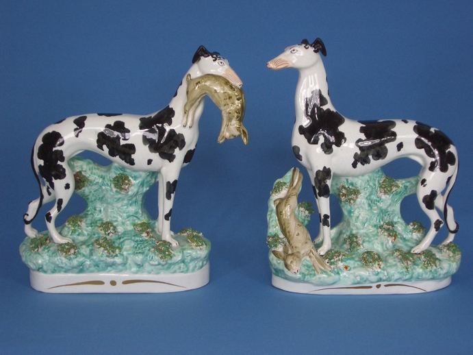 A Pair of Staffordshire Disraeli Greyhounds