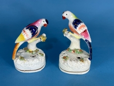 A Pair of Staffordshire Pottery Birds