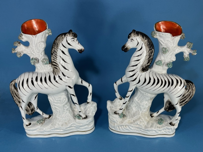 A delightful pair of Staffordshire Zebras.