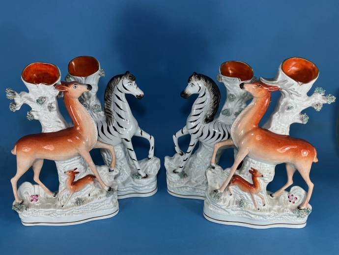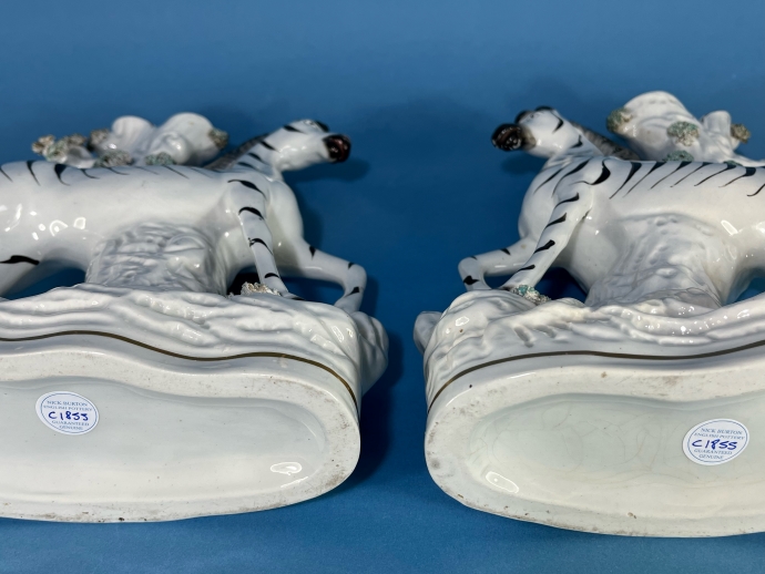 A Pair of Staffordshire Pottery Zebras circa - 1855